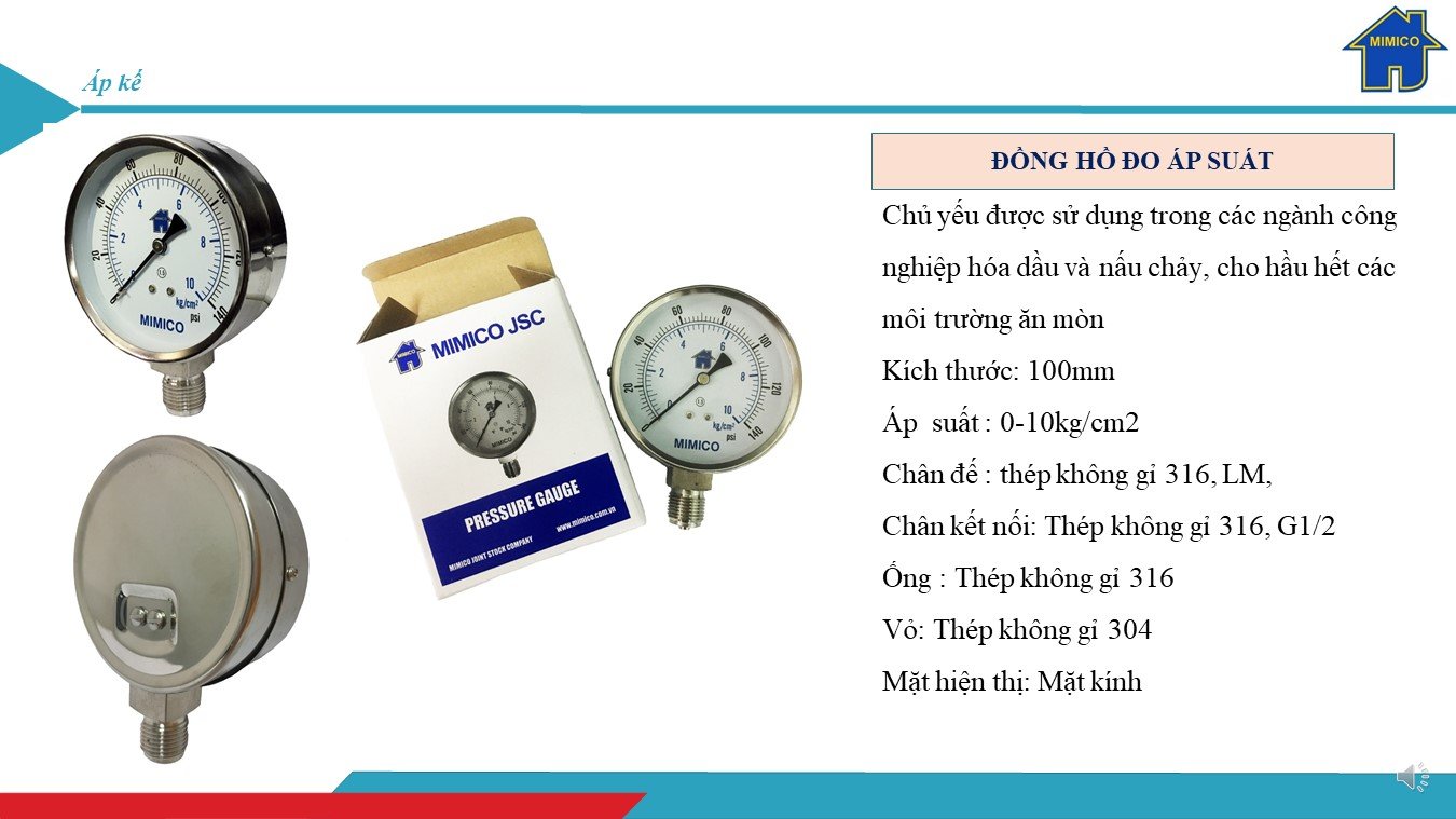 - Áp kế Mimico được làm từ chất liệu thép không rỉ, có độ bền rất cao, tránh mọi va đập và hư hỏng do các tác nhân khách quan