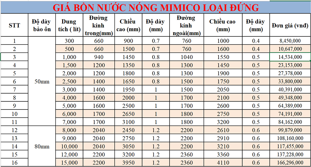 BẢNG GIÁ BÌNH BẢO ÔN KHÔNG CHỊU ÁP