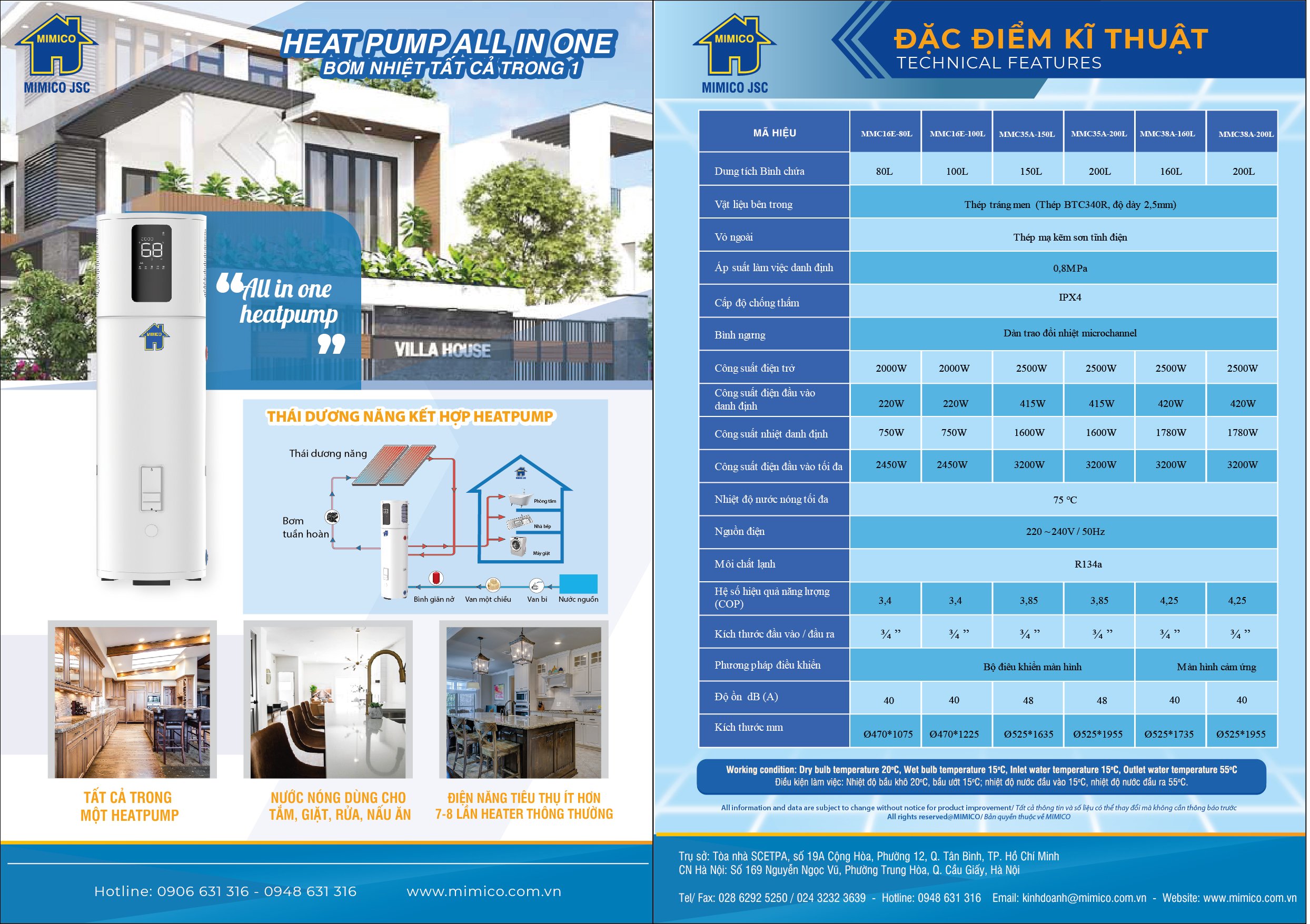 Máy nước nóng bơm nhiệt hoạt động trên nguyên lý giống như máy điều hòa không khí hoặc giống như tủ lạnh. Nó hấp thụ hơi ấm từ không khí và chuyển nó thành nước nóng. Do đó, nó còn được gọi là máy bơm nhiệt nguồn không khí, hoạt động bằng điện, nhưng hiệu quả hơn máy nước nóng chạy điện thông thường. Máy nước nóng bơm nhiệt tất cả trong một hiệu suất cao, Mimico cung cấp các giải pháp làm nóng nước rất hiệu quả và sáng tạo cho ngôi nhà của bạn.