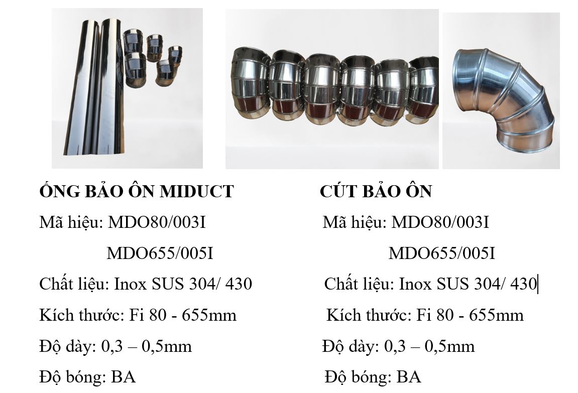 MiDuct là nhà sản xuất và thi công lắp đặt các hệ thống đường ống chuyên nghiệp, tất cả các loại đường ống mà MiDuct đã trải qua, nên hiểu rất rõ về thuận lợi cũng như khó khăn gặp phải trong việc thi công, mà quan trọng  nhất là việc bảo ôn các đường ống, bảo ôn sao cho đẹp, đảm bảo kỹ thuật, công đoạn của việc bảo ôn này chiếm rất nhiều thời gian, vì hiểu các công đoạn mà tất cả bên thi công đường ống đều phải trải qua. Chính vì vậy mà Cút bảo ôn MiDuct đưa đến các nhà thi công sản phẩm như Ống bảo ôn, côn bảo ôn, cút bảo ôn các loại, đã được gia công sẵn chỉ việc lắp đặt, vật liệu thì có nhiều chủng loại như SUS Inox 430, 304, nhôm, tôn các loại, độ dày của Ống bảo ôn hay Cút bảo ôn phù hợp với từng kích cỡ của đường ống sao cho đảm bảo về kỹ thuật cũng như là mỹ thuật.
