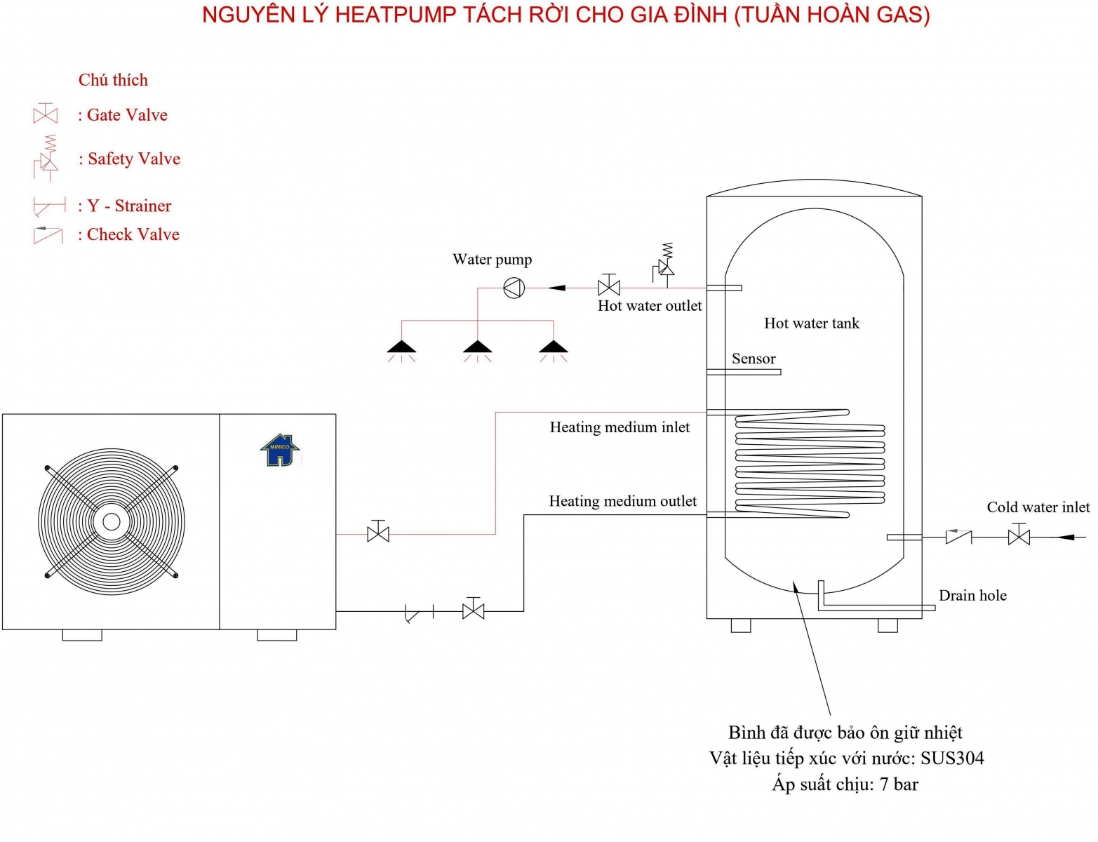 * Sơ đồ lắp đặt bơm nhiệt heatpump.