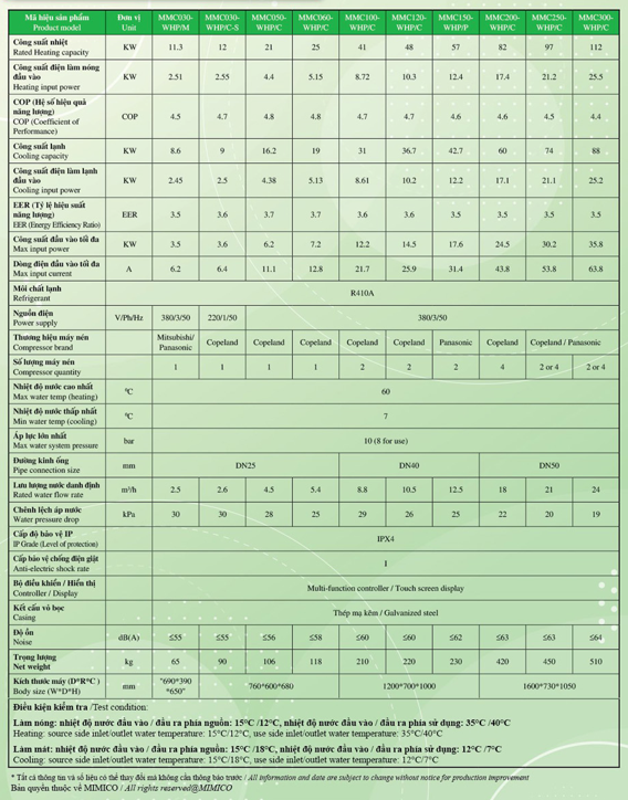 Heat pump giải nhiệt nước MIMICO có nhiều công suất dễ dàng lựa chọn sản phẩm cho phù hợp, heatpump giải nhiệt nước sẽ mang đến giải pháp hoàn hảo nhất từ trước tới nay của mọi người.