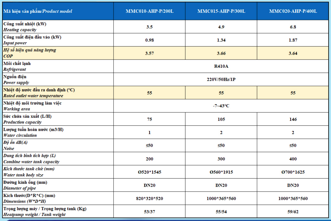 * THÔNG SỐ KỸ THUẬT BƠM NHIỆT TUẦN HOÀN NƯỚC