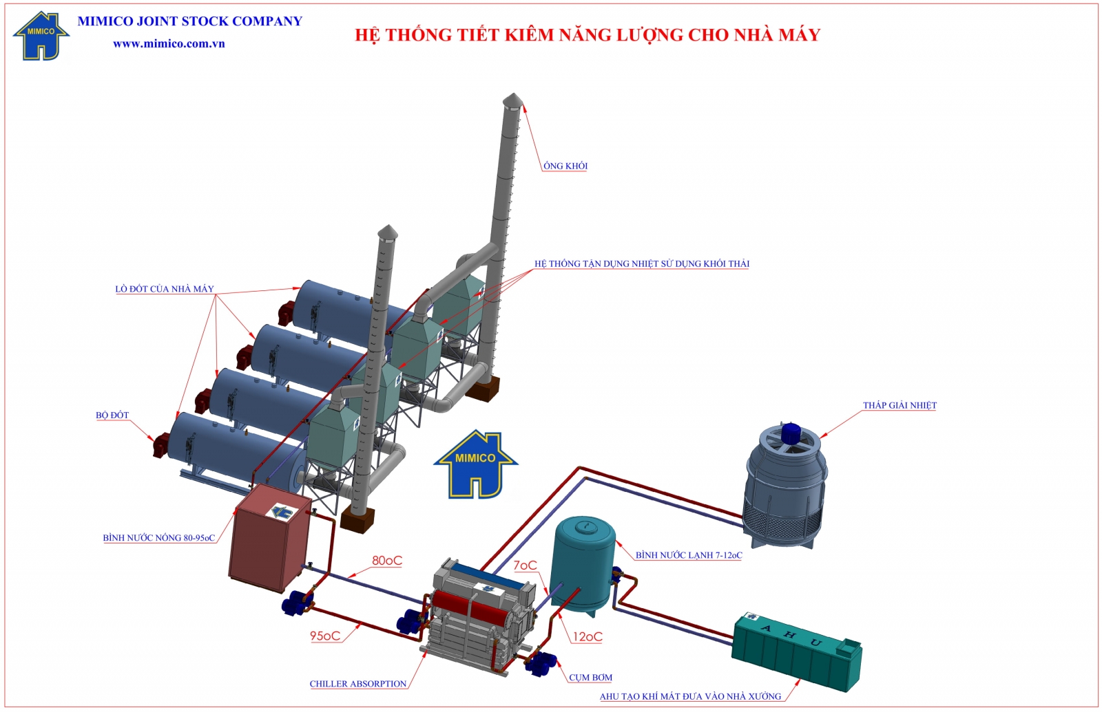 Ngày nay, cuộc sống xanh là một trong những xu hướng phát triển của thế giới hiện đại. để chống biến đổi khí hậu và giữ cho trái đất ngày càng xanh và sạch thì mỗi người, mỗi nhà và mỗi tổ chức cần bắt tay vào thực hiện các hành động để đưa trái đất ngày càng xanh, sạch. Với mục tiêu đó mà đội ngũ kỹ sư MIMICO hoạt động ngày đêm tính toán đưa ra các giải pháp tối ưu nhất cho các nhà máy có nguồn nhiệt dư thừa,