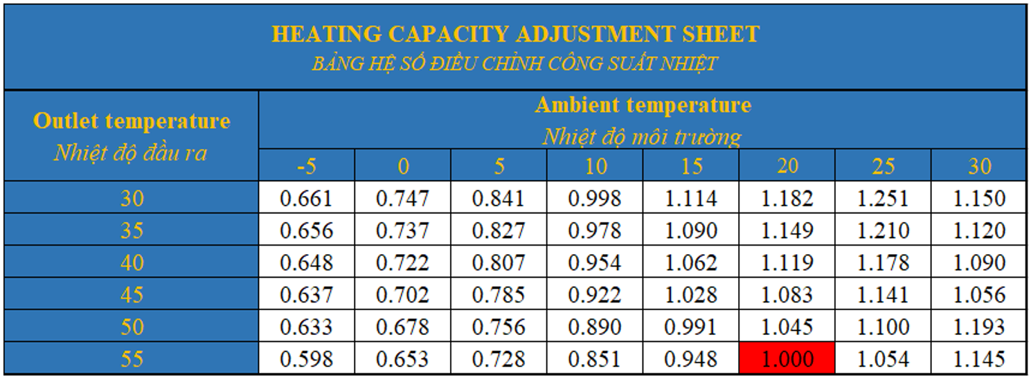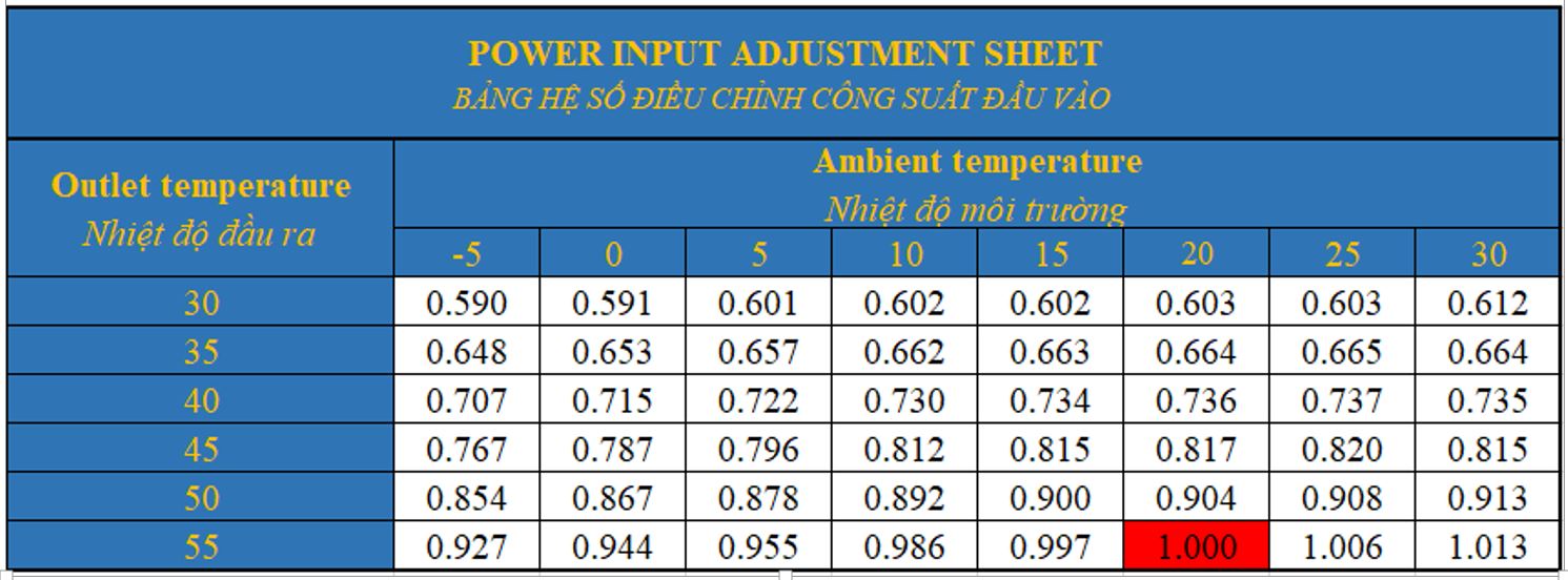 | Heating capacity adjustment factor Hệ số điều chỉnh công suất sưởi |